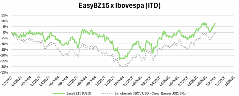 EasyBZ 15 is a total return index composed of shares and/or receipts (ADR) of companies headquartered or with significant operations in Brazil and traded offshore, using as a reference the sectors of the Brazilian GDP, published periodically by IBGE.
