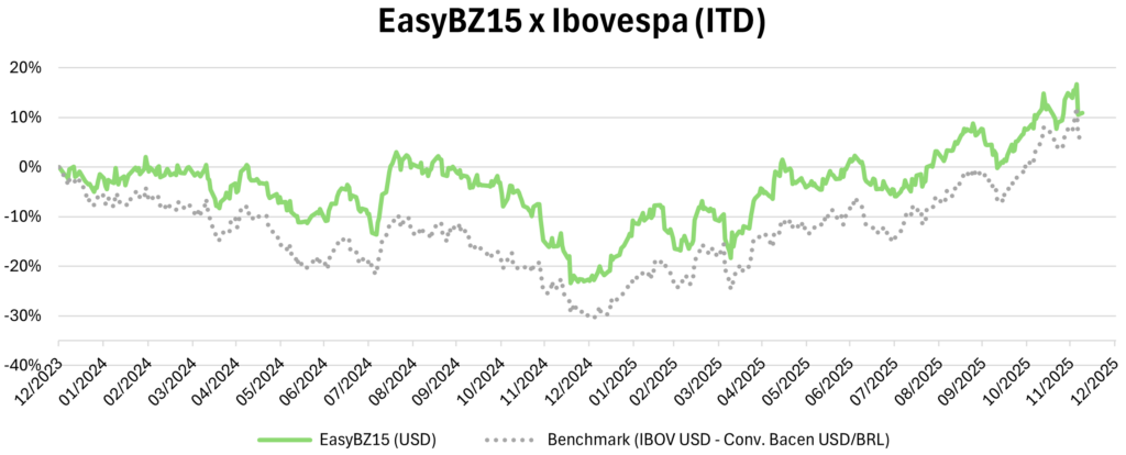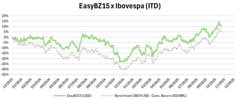 The EasyBZ 15 is composed exclusively of stocks and/or depositary receipts (ADRs) of companies headquartered or significantly operating in Brazil and traded offshore. Eligible assets must meet the following criteria: